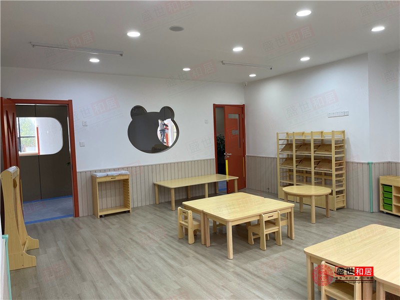 本案為安徽盛世和居裝飾承接的位于合肥·蜀山區的一家托育中心裝修的實景照片,設計師認為在合肥托育中心裝修設計時,應當站在幼兒的角度,根據幼兒的使用習慣、心理特征、學習規律規劃出科學的空間。做到功能有序、整體統籌,讓室內環境效率更高,滿足布局流動的順暢和活力。