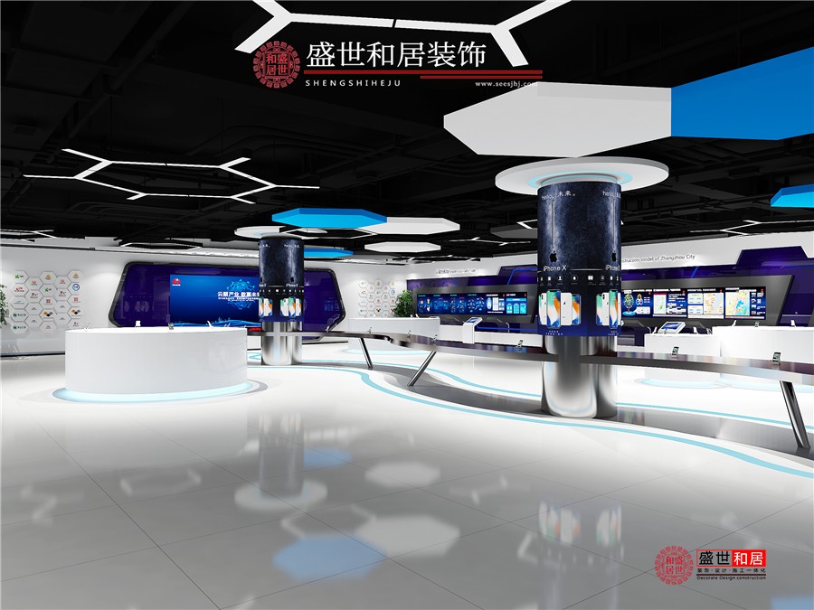 本案為智能科技公司的展廳裝修設計效果圖,盛世和居裝飾設計師根據其公司的形象產品特點來運用建筑學、美學等相結合,并進行對其產品的擺放位置,展廳空間的設計等等設計出大氣同時富有企業獨特的個性。
